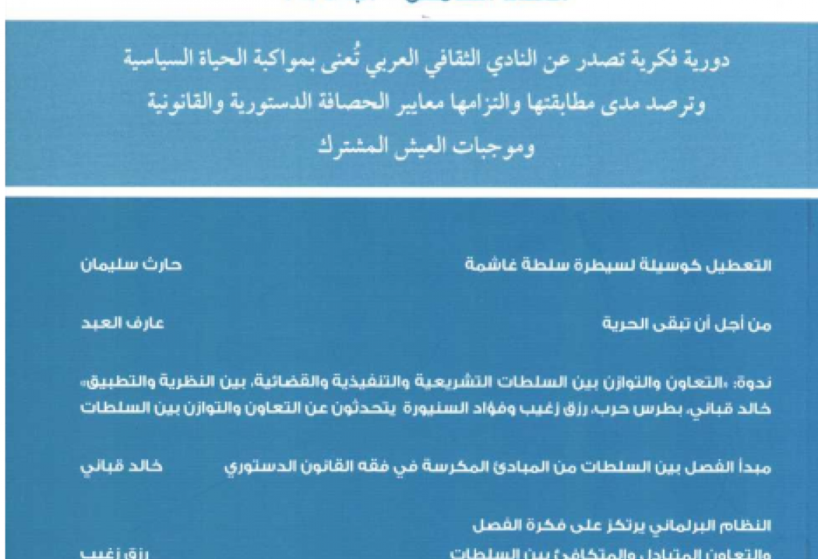 دورية فكرية تعنى بمواكبة الحياة السياسية وترصد مدى مطابقتها والتزامها معايير الحصافة الدستورية والقانونية وموجبات العيش المشترك